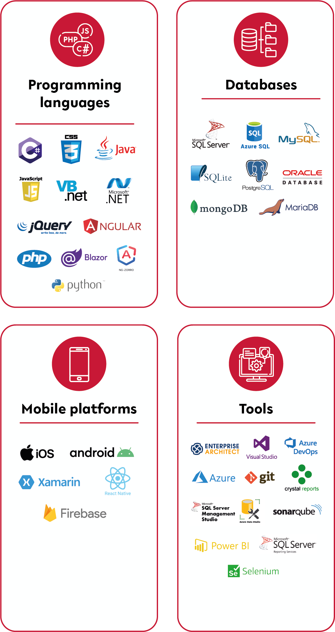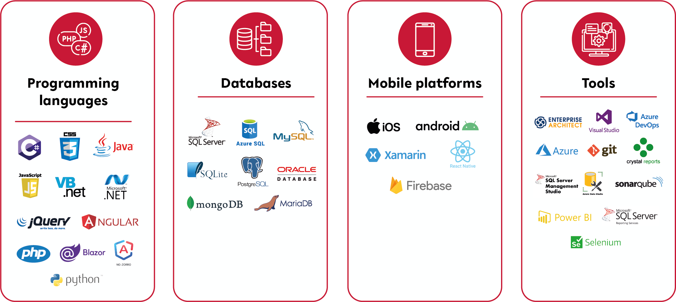 We leverage various programming languages and frameworks, databases, and other tools to provide web and mobile solutions that help our clients drive business value and innovation.